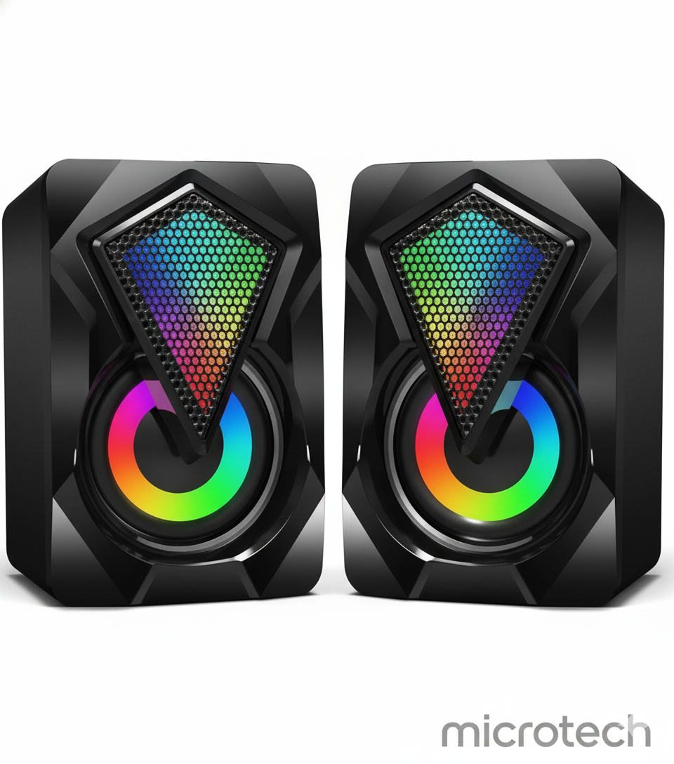 A compact stereo speaker designed to deliver clear, balanced sound for laptops, desktops, and everyday multimedia use.