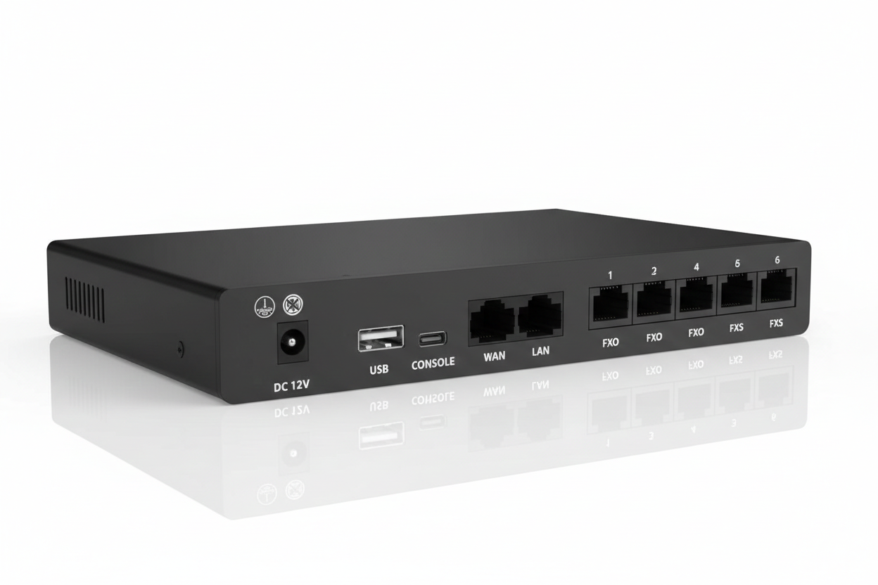 • 4 منافذ FXO ومنفذان FXS: تكامل تناظري هجين لدعم شبكة الهاتف العامة (PSTN) والأجهزة التناظرية